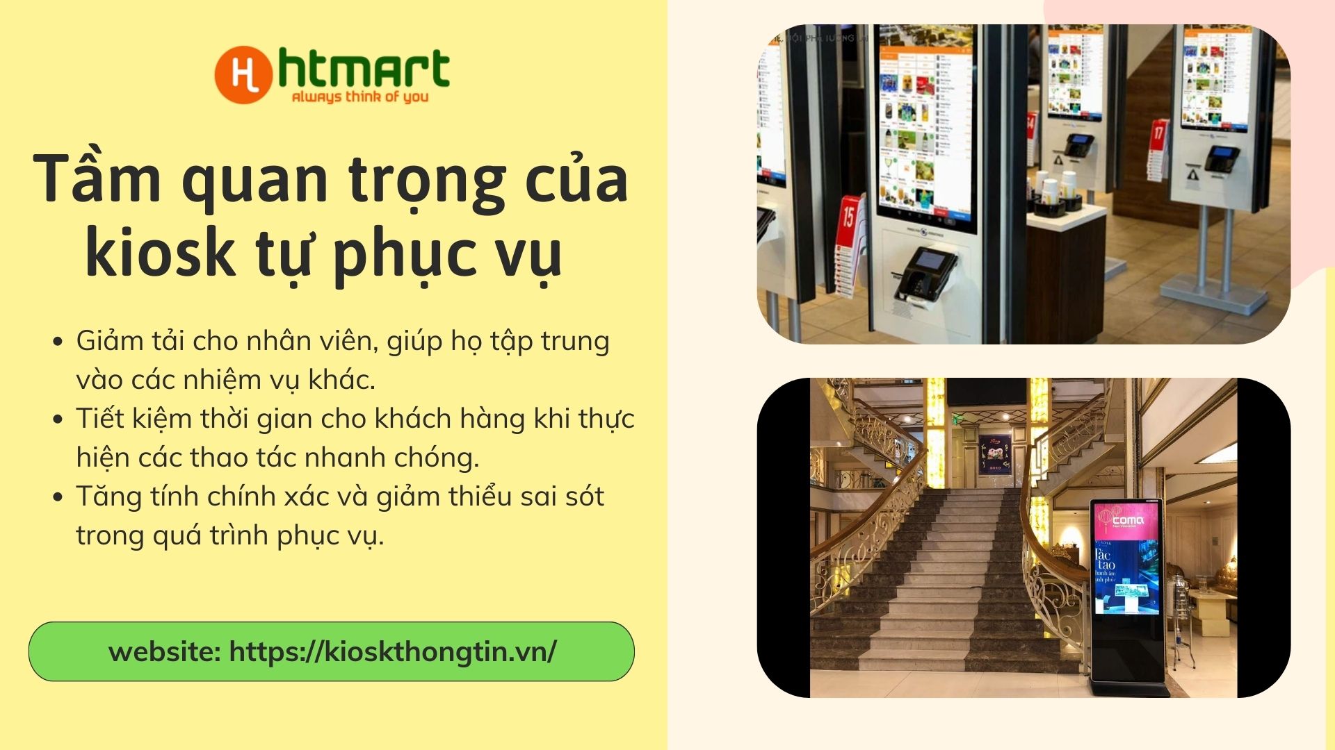 Chúng ngày càng trở nên quan trọng trong ngành dịch vụ, đặc biệt là trong việc cải thiện quy trình phục vụ khách hàng và nâng cao hiệu quả kinh doanh. Những lợi ích rõ rệt mà kiosk tự phục vụ mang lại bao gồm: