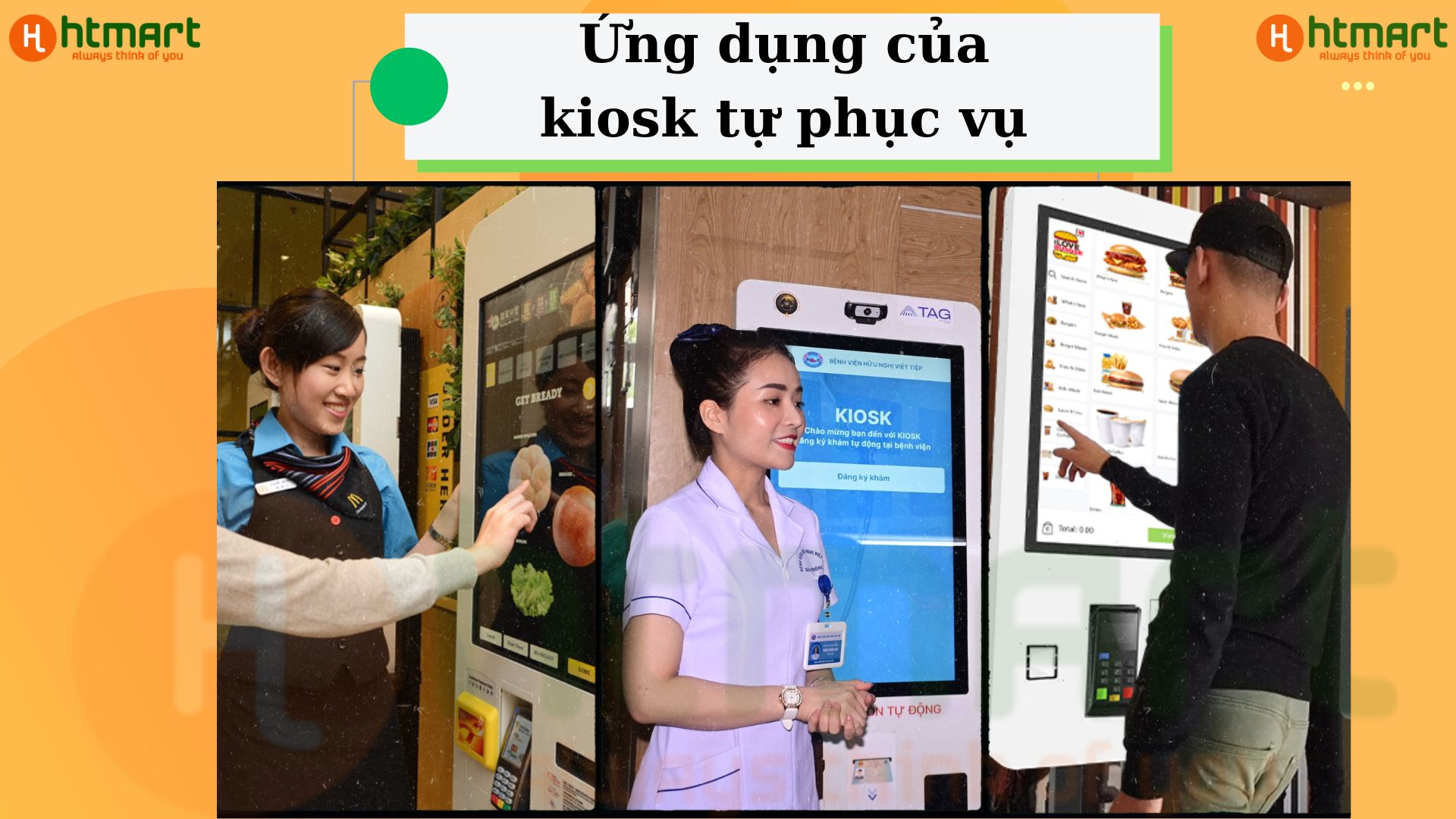 - Kiosk Tự Phục Vụ (Self-order Kiosk): Phổ biến trong các nhà hàng, quán cà phê, cho phép khách hàng tự lựa chọn món ăn và đặt hàng.